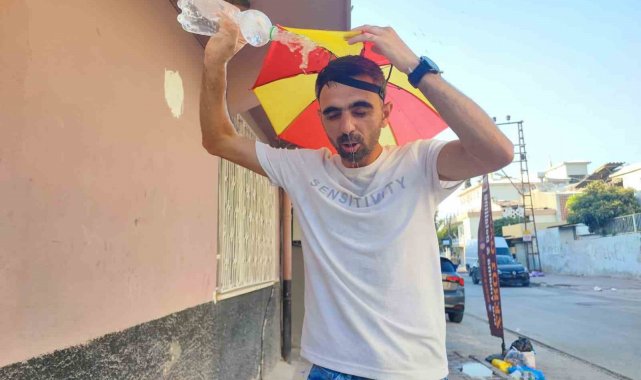 Meteoroloji verilerine göre Adana'da kent genelinde sıcaklık hafta sonuna kadar 40-45 derece arasında seyretmesi bekleniyor. Nem ile birlikte hissedilen sıcaklık ise 55-60 derece arasında olacak. Aşırı sıcaklar nedeniyle herkes kendine göre çözüm bulmaya çalışıyor. Gençlerden Mesut Akpınar ise sokağa kafasına taktığı şemsiye ile çıkıyor. Çok sıcak olduğunu belirten Akpınar, "Hava çok sıcak bu nedenle bir esnaftan kafaya monte edilen şemsiye aldım. Artık sokağa bunsuz çıkmıyorum. Hava çok sıcak, yanıyoruz" dedi.