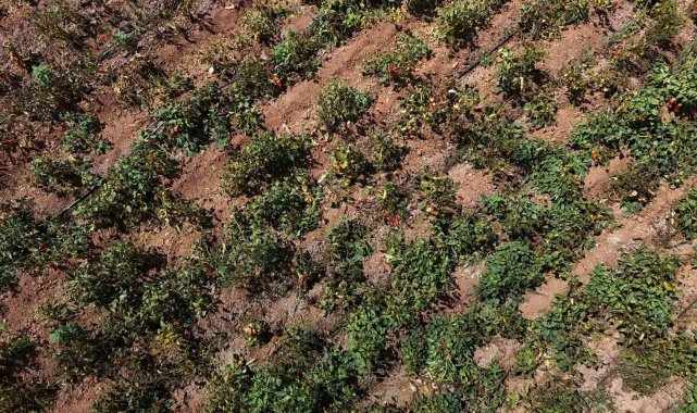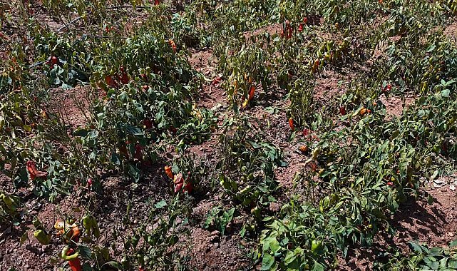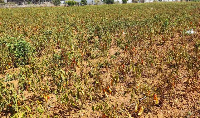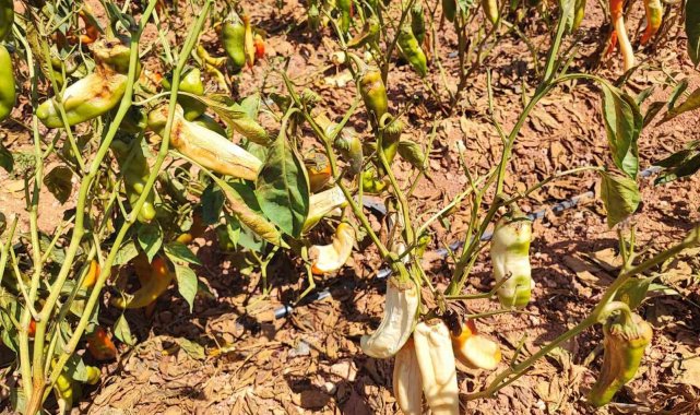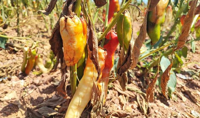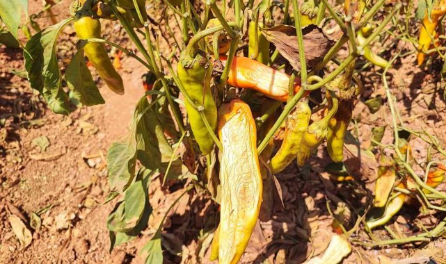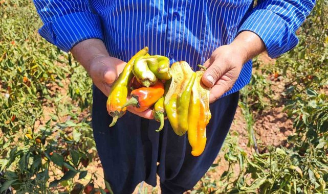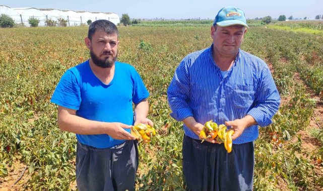 Biber üreticisi Hakim Özkan, "Trips denilen bir böcek biberleri istila etti. Hal böyle olunca zaten biberlerde sorun vardı bir de üstüne sıcaklar vurdu. 3 ton verim bekliyorduk ama şu an 500 kilogram anca verim alacağız" dedi.