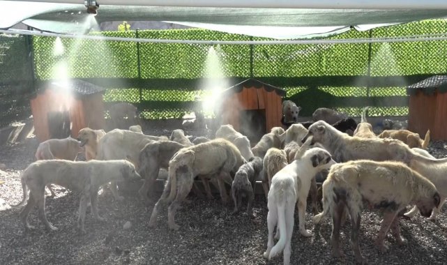 Her gün fıskiye ve tentelerin gölgelerinde serinleyen köpekler, veteriner hekim eşliğinde günün belli saatlerinde ise beslememeleri sağlanıyor.