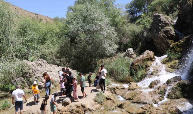 Aşırı sıcakların yaşandığı bugünlerde serinlemek isteyenler Girlevik Şelalesi'ne akın ediyor