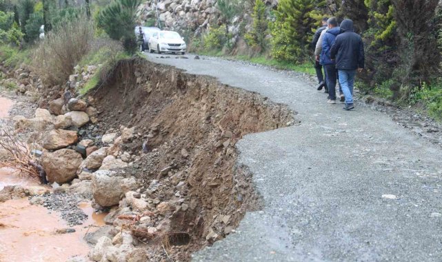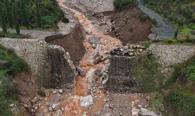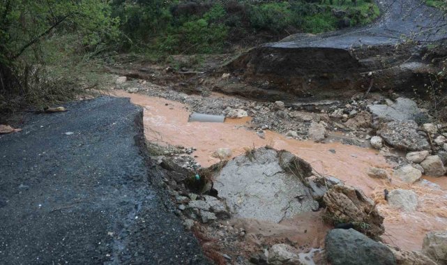 Aşırı yağışla birlikte derenin artan debisi köprüyü yıktı, yolda çökmeye neden oldu
