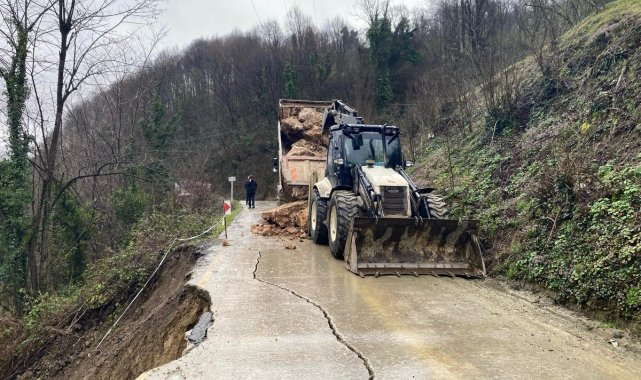 Aşırı yağışlar heyelana neden oldu yol çatladı