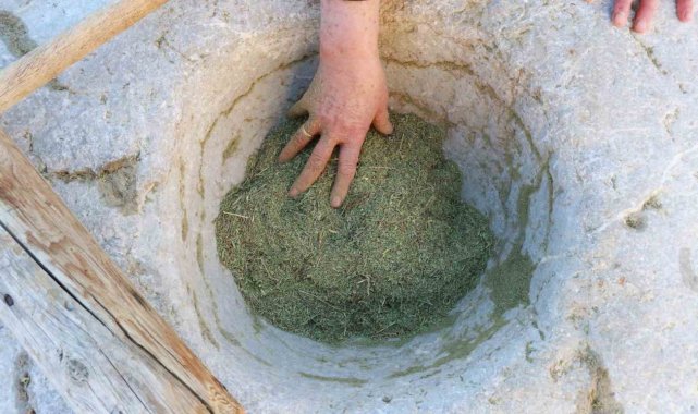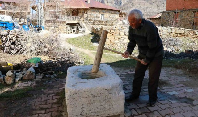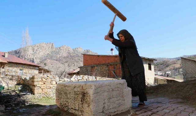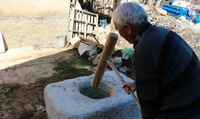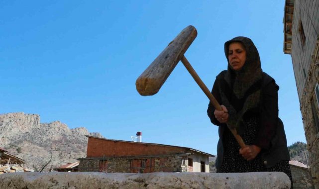 Teknolojik gelişmelere rağmen geleneksel yöntemleri terk etmediklerini dile getiren Sevinç, "Bu dibek varken mutfak robotuna gerek kalmıyor. Elimizin emeği, alnımızın teriyle tokmakla dövüyoruz. Atalarımız bize böyle bırakmış, biz de koruyoruz. Ben 45 senedir burada kullanıyorum" ifadelerini kullandı.