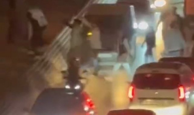 Bursa'nın İnegöl ilçesinde meydana gelen olayda asker konvoyundaki gençler bir anda tartışmaya başladı. O anlar amatör kameraya saniye saniye yansıdı.