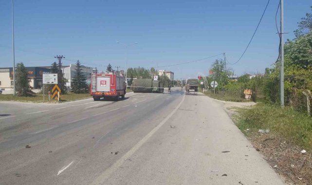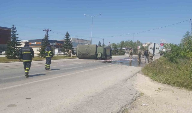 Kazada 3'ü askeri personel 4 kişi yaralandı. Kaza anı güvenlik kamerasına yansıdı.
