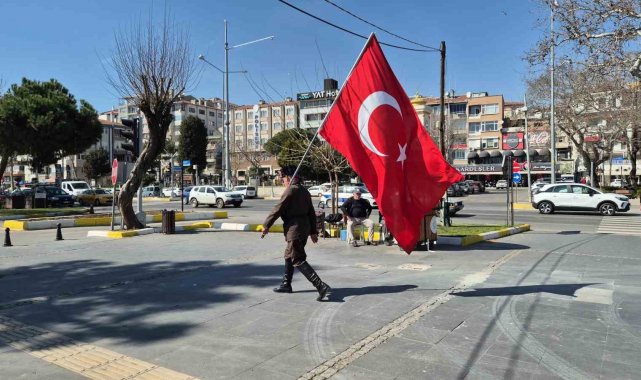 Çanakkale şehitlerini anmak için İstanbul'dan Türk bayrağıyla yola çıkan Saffet Gümüş, vefa yürüyüşünün 4'üncü gününde Tekirdağ'a ulaştı.
