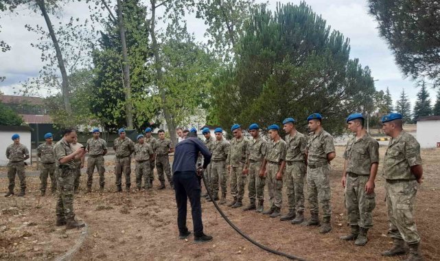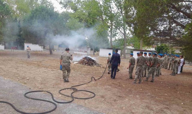 Kocaeli Büyükşehir Belediyesi İtfaiyesi, Kandıra Alay Komutanlığı'nda görev yapan askeri personele yönelik yangın söndürme tatbikatı düzenlendi.