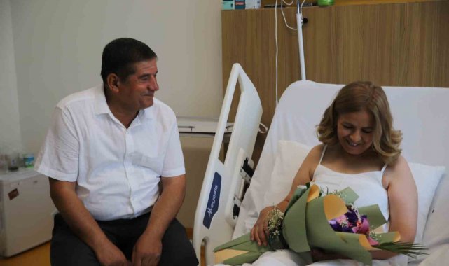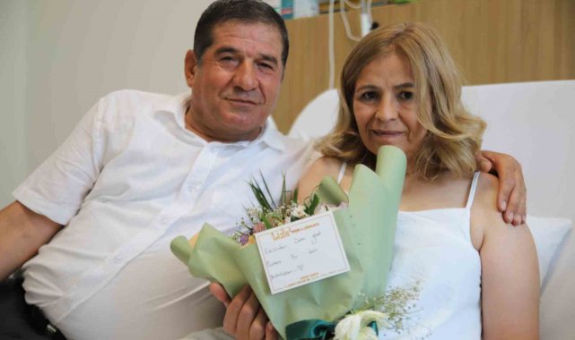 Geçirdiği beyin kanaması sonucu anjiyo olan ve tedavisi devam eden 52 yaşındaki Huriye Akkaya'yı 5 yıl önce boşandığı 57 yaşındaki eşi Cemal Korkmaz, hastalığı boyunca bir an olsun yalnız bırakmadı. Geçtiğimiz şubat ayında beyin kanaması geçiren Huriye Akkaya'ya Gaziantep Şehir Hastanesi'nde beyin anjiyosu yapıldı. Anjiyo sonrası tedavisine fizik tedavi bölümünde devam edilen Huriye Akkaya'ya bu zorlu süreçte en büyük desteği boşandığı eşi Cemal Korkmaz verdi. Tedavisi boyunca Huriye Akkaya'nın yanında olan, moral veren ve umut olan Cemal Korkmaz ile Huriye Akkaya arasındaki bağ yeniden kuvvetlendi. Hayatlarına tekrar birlikte devam etme kararı alan Huriye Akkaya ve Cemal Korkmaz çifti, alınan bu anlamlı kararla birlikte Gaziantep Şehir Hastanesi'nde kıyılan resmi nikah ile yeniden dünya evine girdi. 31 yıllık evliliklerini çeşitli gerekçelerle 5 yıl önce sonlandıran Huriye Akkaya ve Cemal Korkmaz, yıllar sonra hayatını yeniden birleştirme kararı aldıkları hastanede nikah masasına oturdu. Nikah töreninde hastane yönetimi ve sağlık çalışanları da çiftin mutluluğuna tanıklık etti. Duyguların yoğunlaştığı anlarda gözyaşları da, tebessümler de eksik olmadı. Gaziantep Şehir Hastanesi yönetimi ve sağlık çalışanları, yeniden hayatlarını birleştiren Akkaya ve Korkmaz çiftine sağlıklı, huzurlu ve sevgi dolu bir ömür temennisinde bulundu.