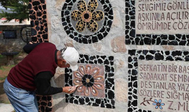 Nevşehir'de yaşayan 74 yaşındaki Rafet Topraktepe; ölen eşine olan aşkını taşlara işledi. İşlediği taşlarla bahçesine eşinin adına anıt park yaptı.