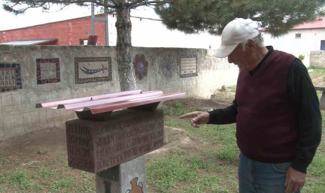 Topraktepe; "Eşim bu bahçeyi çok seviyordu. Buralarda gezer, çayını burada içerdi. Ben de kendisine vefa borcumu ödemek için bu yazıyı yazdım. Bu sayede anısını burada yaşatmaya çalışıyorum" ifadelerini kullandı.