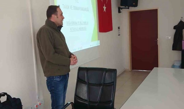 Kütahya DKMP Şube Müdürlüğü ekipleri tarafından Aslanapa Ortaokulunda 140 öğrenciye biyolojik çeşitlilik, biyokaçakçılık, tabiat parkları ve yaban hayatı konuları üzerine eğitim verildi.