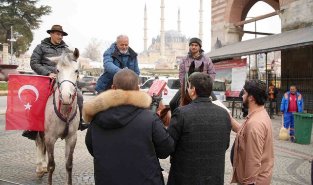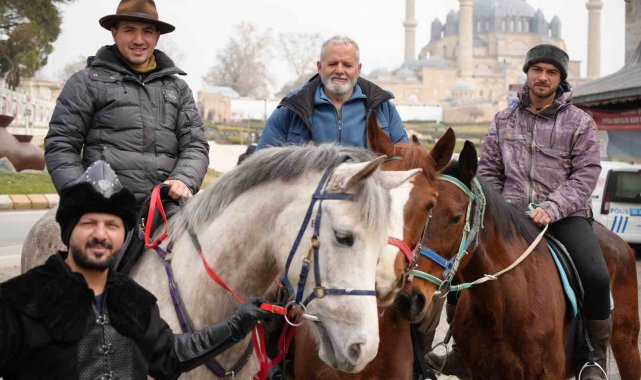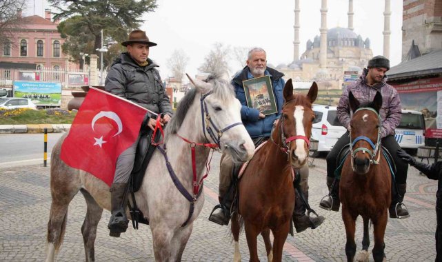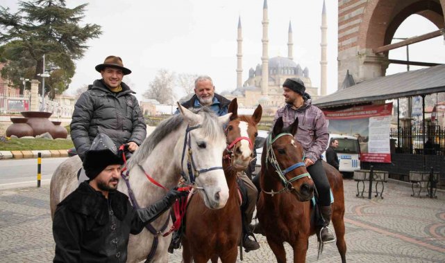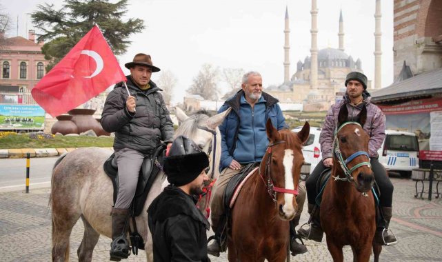 İspanya'dan at sırtında hac yolculuğuna çıkan ve 8 bin kilometrelik bir rota izleyerek Mekke'ye ulaşmayı hedefleyen Endülüslü Müslümanlar Edirne sokaklarını at üstünde gezdiler.