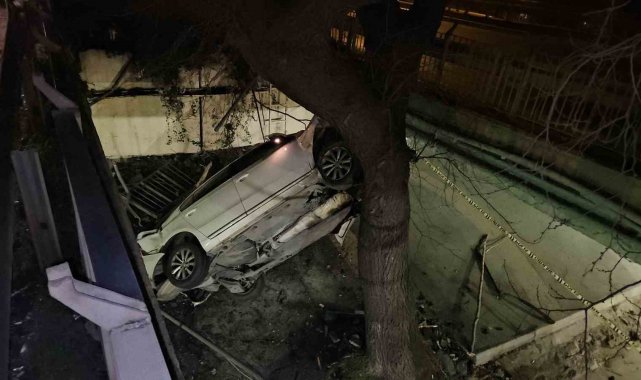 Ataköy'de alkollü sürücü, kullandığı aracın direksiyon hakimiyetini kaybederek iki yol ayrımındaki boşluğa düştü. Ağır hasar alan otomobil ağaca çarparak asılı kalırken, sürücüsü hastaneye kaldırıldı.
