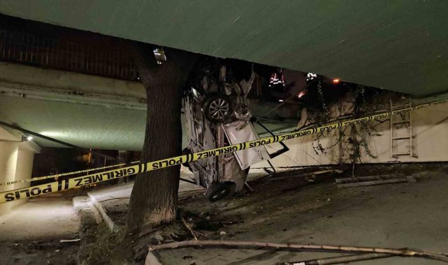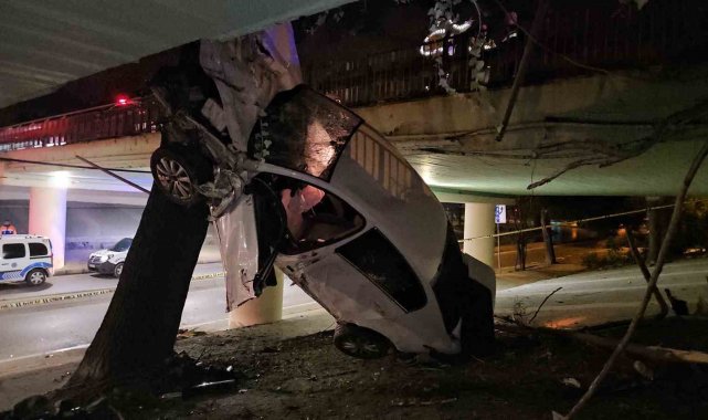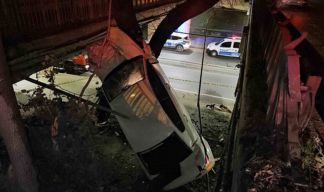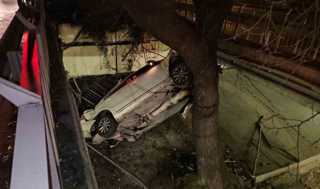 Çarptığı ağaçta dik bir şekilde asılı kalan araç ise çekici marifetiyle kaza yerinden kaldırılmasının ardından trafik normale döndü. Polis olayla ilgili inceleme başlattı.