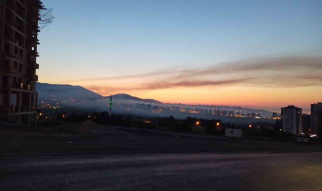 Samsun'un Atakum ilçesinde şantiye yanındaki araziye bırakılan atıkların yanması sonucu ilçeyi duman kapladı.