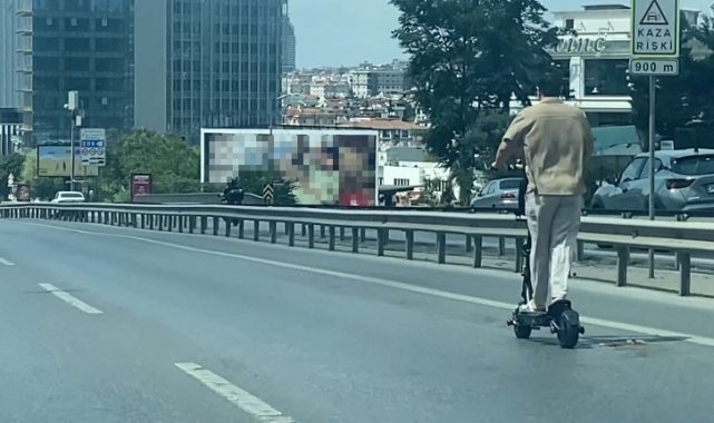 Ataşehir D-100 Karayolu'nda bir kişi, üzerinde hiçbir güvenlik ekipmanı bulunmadan scooter ile ilerleyerek hem kendi canını hem de trafiği tehlikeye attı. Kilometrelerce süren tehlikeli yolculuk cep telefonu kamerasına yansıdı.