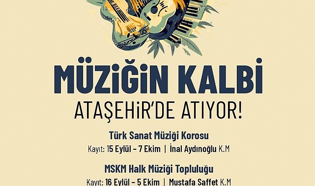 Ataşehir Belediyesi'nin sanat müziği ve halk müziği dallarında yetişkinlere yönelik kurduğu 3 farklı topluluk, her yıl yeni üyelerin katılımıyla gelişerek büyüyor. Bu kapsamda Ataşehir Belediyesi'nin Türk Sanat Müziği, MSKM Halk Müziği ve Anadolu Halk Müziği toplulukları yeni dönem çalışmalarına ekim ayında başlayacak. Müzik toplulukları sayesinde müzik zevklerini, bilgilerini ve repertuvarlarını geliştirecek katılımcılar, aynı zamanda yeni dostluklar da kuracak. Bünyelerine bu yıl da sanat müziği ve halk müziğine gönül veren yeni üyeler katmayı amaçlayan müzik toplulukları, bu müzik ailesinin parçası olmak isteyen Ataşehirli yeni sesleri bekliyor. Türk Sanat Müziği Korosu'na 15 Eylül-7 Ekim, MSKM Halk Müziği Topluluğu'na 16 Eylül-5 Ekim ve Anadolu Halk Müziği Topluluğu'na 22-30 Eylül tarihleri arasında başvuruda bulunulabilecek.
