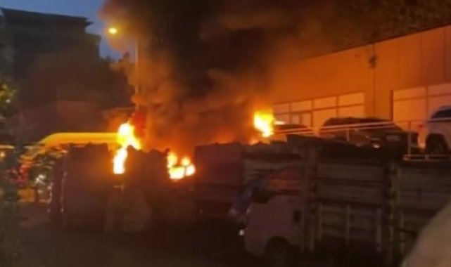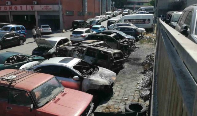 Ataşehir'de oto sanayi sitesinde hurdaya ayrılmış ve tamir edilecek araçların bulunduğu bir alanda yangın çıktı. Kısa sürede büyüyen alevler park halindeki diğer araçlara da sıçradı. Araçların alev alev yandığı anlar cep telefonu kamerasına yansıdı.