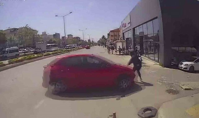 Ataşehir'de yokuş aşağı seyir halindeki araçların karıştığı zincirleme kazada savrulan otomobil yayaya çarptı. Yaralanan kadın hastaneye kaldırılırken, kaza anı güvenlik kamerasına yansıdı.