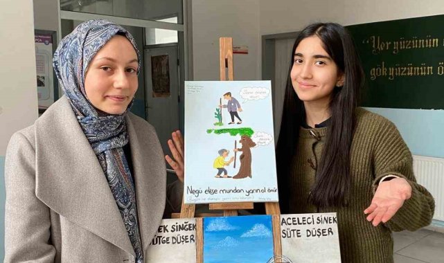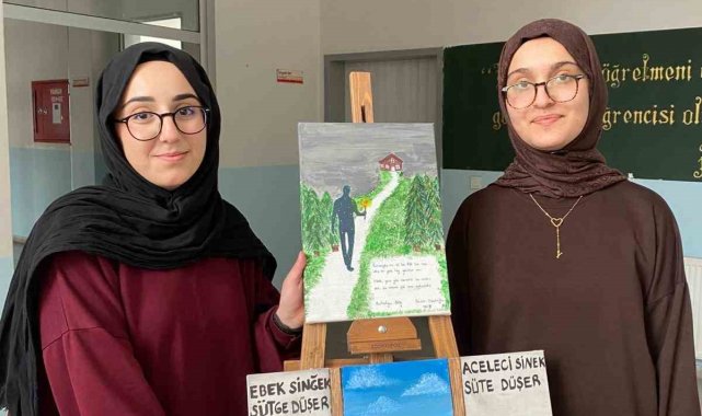 Diyarbakır'ın Bismil ilçesinde öğrenciler atasözleri ve deyimleri hayal gücüyle tuvale yansıttı.