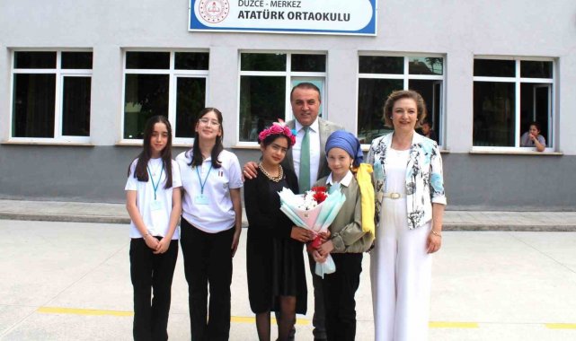 Düzce'de eğitim faaliyetlerine devam eden Atatürk Ortaokulu'nda kütüphane açıldı. Açılışa İl Milli Eğitim Müdürü Emrullah Aydın ile şube müdürü Ahmet Yakupoğlu'da katılım sağladı. Açılışı yapılan kütüphanenin ardından, öğrencilerin yıl boyunca hazırladığı görsel sanat eserleri, teknoloji tasarım ürünleri ve Anadolu Mektepleri Yazar Okumaları Projesi çalışmalarından oluşan sergi gezildi. Sergideki çalışmaları tek tek inceleyen Emrullah Aydın, öğrencilerle sohbet ederek yeni açılan kütüphanenin de okul için hayırlı olmasını temenni etti.