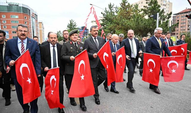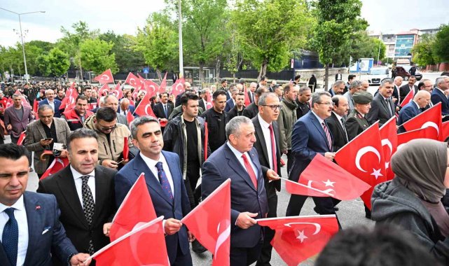 İstanbulkapı mevkiinde bir araya gelen öğrenciler, gaziler, vatandaşlar ve atlı cirit ekibi, Kolordu Komutanlığı Bölge Bandosu eşliğinde ellerinde Türk bayrakları ve Atatürk posterleriyle Havuzbaşı Kent Meydanı'na kadar yürüdü.