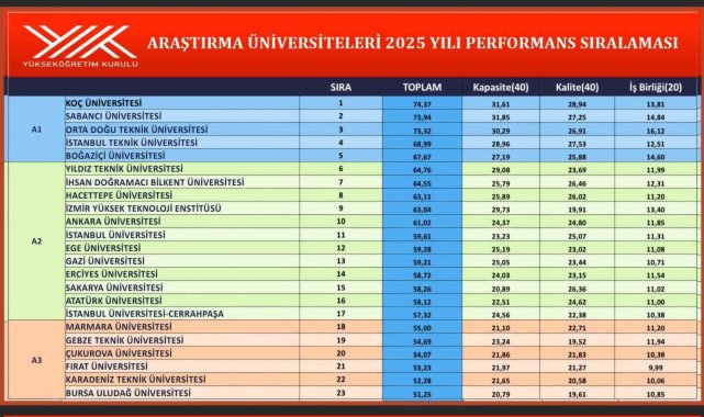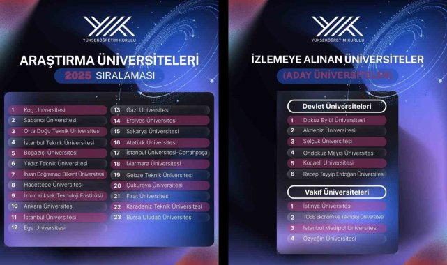 Türkiye genelinde 23 araştırma üniversitesi ile 6 aday araştırma üniversitesinin katılımıyla yapılan toplantıda kurumların güncel performansları, gelişim alanları ve araştırma kapasitesini güçlendirmeye yönelik süreçler ayrıntılı biçimde ele alındı. Toplam 208 yükseköğretim kurumunun değerlendirildiği süreçte, Araştırma Üniversitesi statüsüne sahip ilk 23 üniversiteden 22'si 2025 yılı sıralamasında yerini korumayı başardı. Sıralamadaki tek değişiklik ise aday statüsünde gerçekleşmiş olup, Gaziantep Üniversitesinin yerine Recep Tayyip Erdoğan Üniversitesi aday listesine dahil edildi.