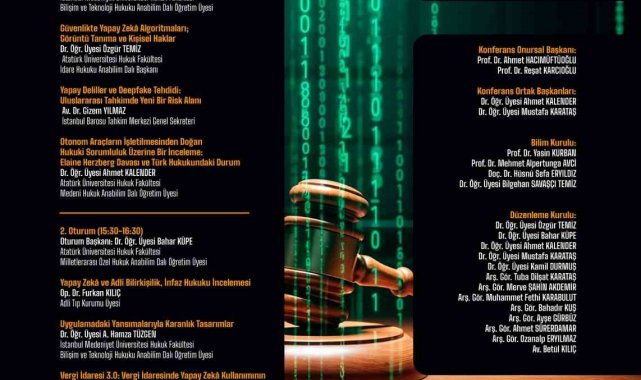 Konferansta, İstanbul Medeniyet Üniversitesi Hukuk Fakültesi Bilişim ve Teknoloji Hukuku ABD Öğretim Üyesi, Dr. Öğr. Üyesi Şerafettin Ekici, AB Kripto Varlık Yasası (MiCA'nın) Genel Çerçevesi; Atatürk Üniversitesi Hukuk Fakültesi İdare Hukuku ABD Başkanı Dr. Öğr. Üyesi Özgür Temiz, Güvenlikte Yapay Zekâ Algoritmaları; Görüntü Tanıma ve Kişisel Haklar; İstanbul Barosu Tahkim Merkezi Genel Sekreteri/Fatih Sultan Mehmet Vakıf Üniversitesi Hukuk Fakültesi Avrupa Birliği Hukuku ABD Öğretim Üyesi, Av. Dr. Öğr. Üyesi Gizem Yılmaz, Yapay Deliller ve Deepfake Tehdidi: Uluslararası Tahkimde Yeni Bir Risk Alanı; Atatürk Üniversitesi Hukuk Fakültesi Medeni Hukuk ABD Öğretim Üyesi/Bilişim ve Teknoloji Hukuku ABD Başkanı Dr. Öğr. Üyesi Ahmet Kalender, Otonom Araçların İşletilmesinden Doğan Hukuki sorumluluk üzerine bir inceleme: Elaine Herzberg Davası ve Türk Hukukundaki Durum; Adli Tıp Kurumu Üyesi Op. Dr. Furkan Kılıç, Yapay Zekâ ve Adli Bilirkişilik, İnfaz Hukuku İncelemesi; İstanbul Medeniyet Üniversitesi Hukuk Fakültesi Bilişim ve Teknoloji Hukuku ABD Öğretim Üyesi Dr. Öğr. Üyesi A. Hamza Tüzgen, Uygulamadaki Yansımalarıyla Karanlık Tasarımlar; Atatürk Üniversitesi Hukuk Fakültesi Mali ABD Öğretim Üyesi Dr. Öğr. Üyesi Mustafa Karataş, Vergi İdaresi 3.0: Vergi İdaresinde Yapay Zekâ Kullanımının ortaya çıkardığı fırsatlar ve taşıdığı riskler ve İstanbul Medeniyet Üniversitesi Hukuk Fakültesi Bilişim ve Teknoloji Hukuku ABD Öğretim Elemanı Arş. Gör. Salih Karadeniz, Türk Hukukunda Erişimin Engellenmesi başlıklı bildirilerini sundu.