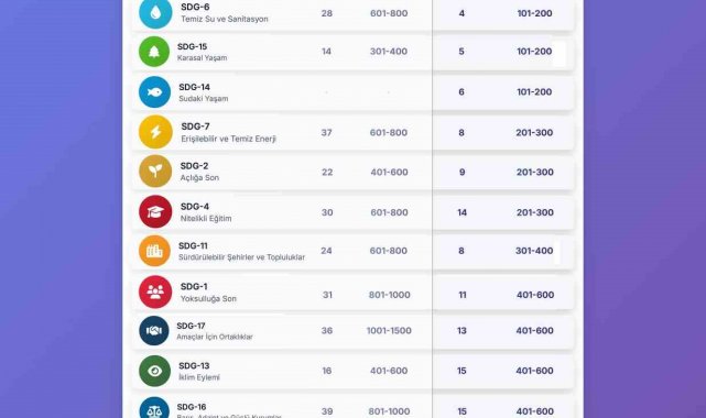 Sıralamadaki öne çıkan gelişmelerden bazıları şu şekilde oluştu. Yoksulluğa Son başlığında 801-1000'den 401-600 bandına, Açlığa Son başlığında 401-600'den 201-300 bandına, Nitelikli Eğitim başlığında 601-800'den 201-300 bandına, Temiz Su ve Sanitasyon başlığında 601-800'den 101-200 bandına yükseldi.