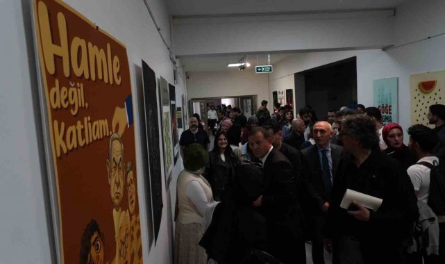 Atatürk Üniversitesi Güzel Sanatlar Fakültesi tüm bölümlerin katılımıyla hazırlanan karma sergide, Gazze'de yaşanan insanlık dramına sanatla tanıklık edildi.