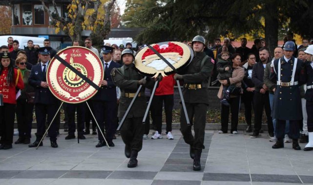 15 Temmuz Şehitler Meydanı'nda bulunan Atatürk Heykeli önündeki törene Uşak Valisi Naci Aktaş, Cumhuriyet Halk Partisi Uşak Milletvekili Ali Karaoba, Belediye Başkanı Özkan Yalım, Uşak Üniversitesi Rektörü Prof. Dr. Ekrem Savaş, Garnizon Komutanı Albay Ertan Benli, İl Emniyet Müdürü Taner Çiftçi, İl Jandarma Komutanı Kıdemli Albay Özgür Kılıç, siyasi parti temsilcileri, sivil toplum kuruluş temsilcileri, öğrenciler ve vatandaşlar katıldı. Uşak Valiliği, Garnizon Komutanlığı ve Uşak Belediyesi adına çelenk sunumlarıyla başlayan program, saatler 09.05'i gösterdiği sırada ise sirenle birlikte saygı duruşu ve İstiklal Marşı ile son buldu.