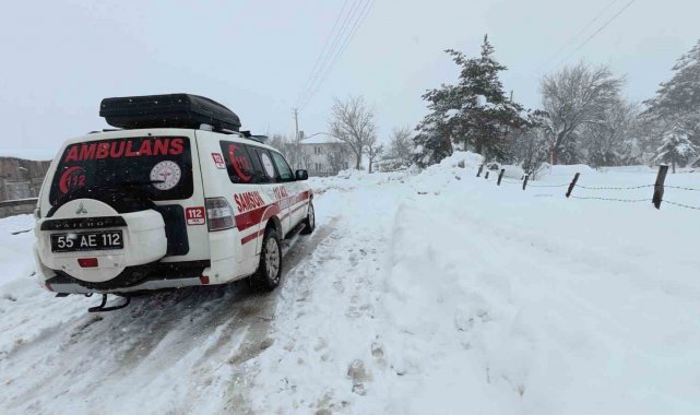 Samsun'da ateşi çıkan bebek için İl Sağlık Müdürlüğü 112 Acil Sağlık Hizmetleri ekipleri karla kaplı yolları aşarak bebeği en kısa sürede hastaneye yetiştirmeyi başardı.