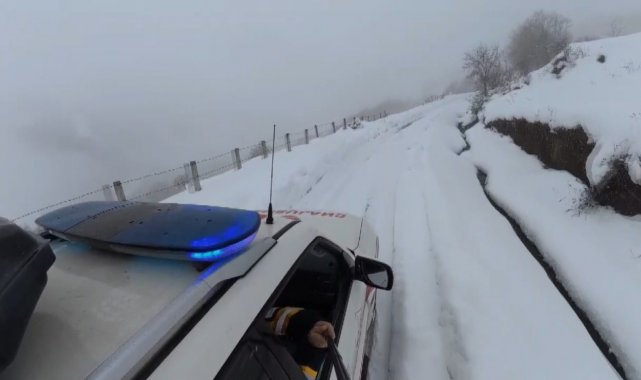 Ateşi çıkan bebek için sağlık ekipleri karlı yolları aştı
