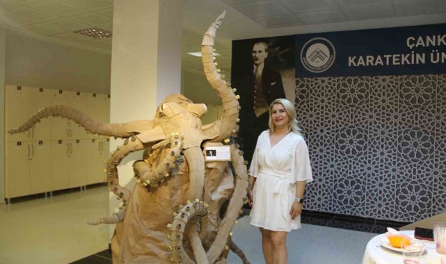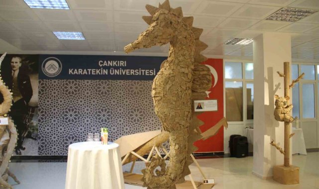 Çankırı'da üniversite öğrencilerinin atık karton ve ambalaj malzemelerinden hazırladığı heykellerin yer aldığı "Karton Heykel Sergisi" ziyaretçilerin beğenisini kazandı.
