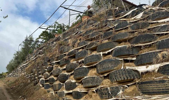 Manisa'nın Sarıgöl ilçesinde bir çiftçi, artık ömrünü tamamlamış olan yüzlerce araç lastiğinden bağ evinin önüne set duvar ördü. Tamamen lastik ve içleri topraktan oluşan geri dönüşümün en güzel örneklerinden birini sergileyen duvar, hem toprak kaymasını önledi hem de çiçek ve sebzelere yuva oldu.