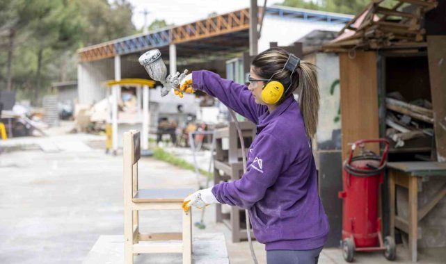 Dedesinden gördüğü marangozluk mesleğini sevdiği için hep bir merakının olduğunu dile getiren Özdemir, "Atölyede kadın marangoz aradıklarını duyunca başvuruda bulundum. Bir süre çalışınca işi sevdim ve kalfalık sertifikasını aldım. Atölyede 5 yıl boyunca ustalarımızla beraber birimlerimize malzemeler ürettik. 5 yılı doldurduktan sonra da ustalık belgemi aldım. Geri dönüşüm atölyemizde şimdiye kadar dairemizin birimlerinin mobilyalarının tamamına yakınını ürettik" dedi.