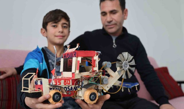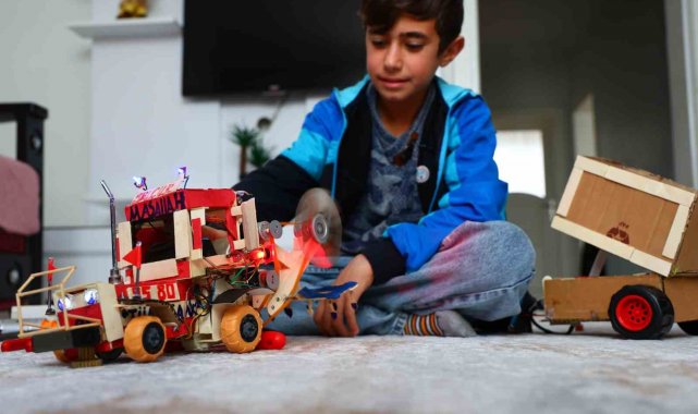 Elazığ'da yaşayan 12 yaşındaki Selçuk Çiçekçi, atık malzemeler ve kendi imkanlarıyla yaptığı traktör maketiyle dikkat çekti. Selçuk Bayraktar'ı örnek alan Selçuk, en büyük hayalinin onun gibi üretmek olduğunu söyledi.