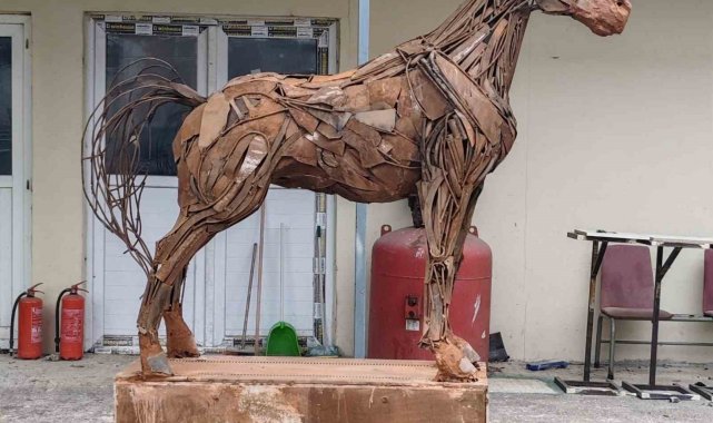 Atık malzemelerin yeniden değerlendirilmesiyle üretilen bu heykel, öğrencilere uygulamalı üretim deneyimi kazandırmanın yanı sıra, çevre bilinci ile sanatı buluşturarak ilham verici bir örnek teşkil ediyor.