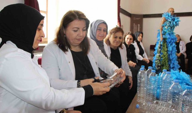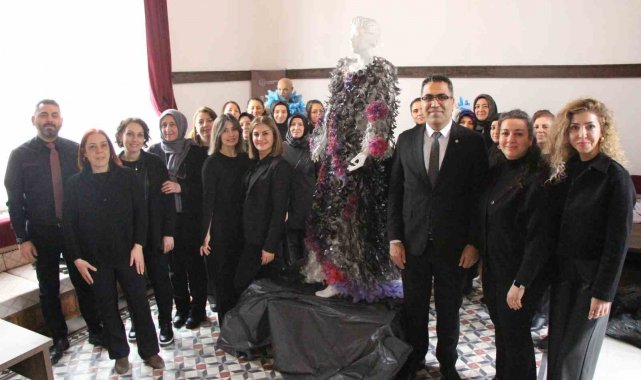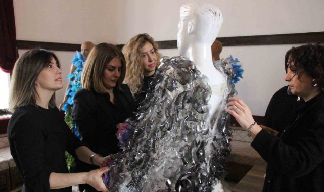 Atık pet şişelerin ve kullanılmış galoşların toplanıp sanat eserine dönüştürüldüğü çalışmanın bir ayda tamamlandığını belirten Elif Kılıç, "Moda, bulunduğu yüzyılın sorunlarını yansıtan bir yapıya sahip. Özellikle iklim değişikliği günümüzün ve gelecek yüzyılın en büyük problemlerinde biri. Bu konuda tüm kadınların desteğine ihtiyacımız olduğuna dikkat çekip davranış değişikliği sağlamak için bu projeyi gerçekleştirdik" dedi.