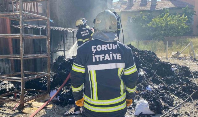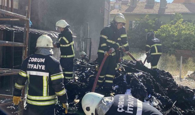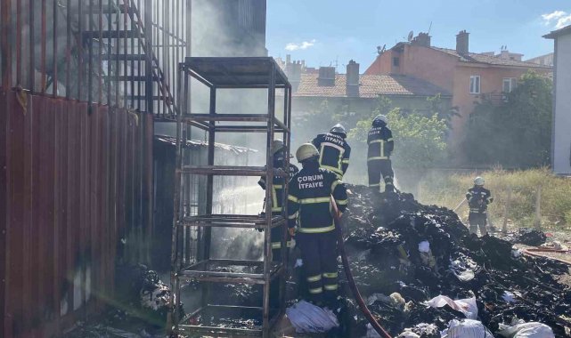Çorum'da tekstil atıklarının istiflendiği arsada çıkan yangın, itfaiye ekipleri tarafından söndürüldü.