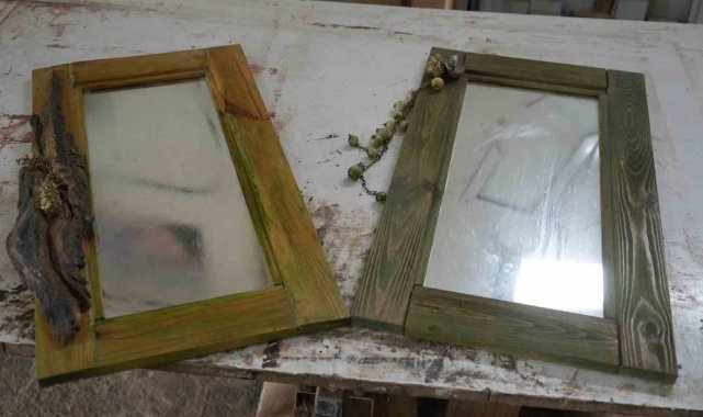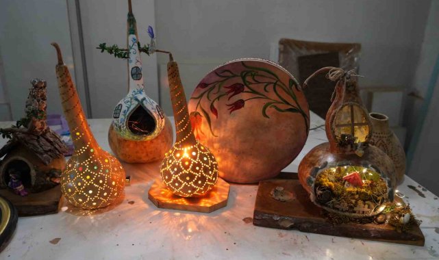 Eski eşyaları gün yüzüne çıkartmanın kendisini mutlu ettiğini ifade eden Saniye Serhatlı, "Kızım üniversiteyi kazanmıştı, bu vesileyle taşındık. O dönemde eşim Mustafa burada bir iş ortaklığı yaptı. Daha sonra da kendimiz bir atölye açtık. Tabii bu atölye açması bizi çok zorladı. Şu anda da ailecek çalışıyoruz. Hafta sonu çocuklarımız bize destek oluyor. Ben eski, yıpranmış, yahut değerini kaybetmiş, aslı bozulmuş olan ürünleri ya farklı bir ürüne çeviriyorum ya da tadilat yaparak eski haline getiriyorum. Ama benim daha çok tercih ettiğim onları bugünkü yaşantımıza uyarlayarak daha güzel, daha kullanışlı hale getirmek. Su kabaklarıyla iş yapmayı daha çok seviyorum. Onları da buraya geldiğimizde keşfettim. Onlardan lamba, üzerinde boyama yapıyorum. Çünkü resmi daha çok seviyorum. Su kabaklarını önce resim yaparak değerlendirmeye başladım, sonra lamba yaptım. Geri dönüşüme katkıda bulunduğum zaman hem mutlu oluyorum hem de üretmiş olmanın mutluluğunu yaşıyorum. Aslında o eski eşyanın ilk halinden son haline kadar olan hikayesini bir tek siz biliyorsunuz. Onun ilk halini bildiğim için son halini de gördüğümde ben mutlu oluyorum" dedi.