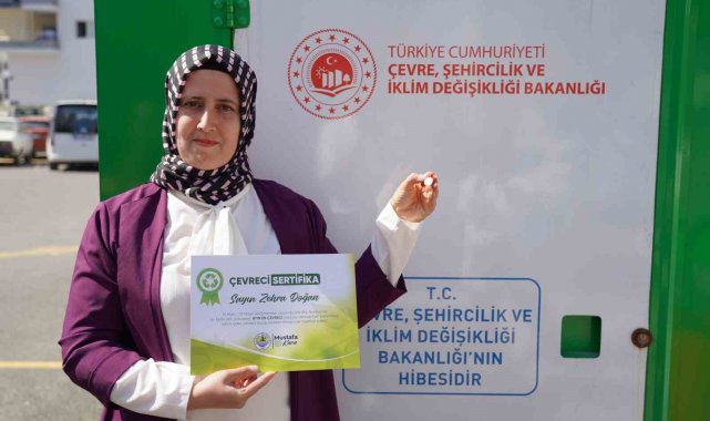Mersin Erdemli Belediyesi Sıfır Atık Projesi kapsamında başlattığı 'Atığını Getir, Altınını Götür' kampanyasına katılan ve en çok puan toplayan 3 çocuk annesi Zehra Doğan altın kazandı.