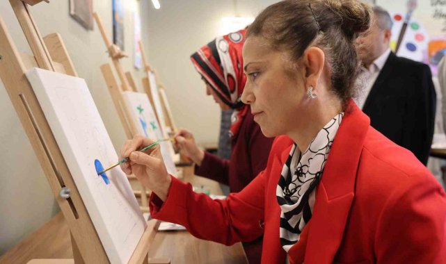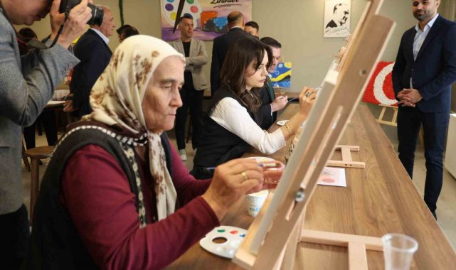 İlçenin ilk kadın kaymakamı Feyza Yılmaz'ın öncülüğünde hayata geçirilen proje, kadınlar ve gençleri sanatla buluşturdu. 67 yaşındaki Elif Özata yarım kalan hayallerini tuval başına geçerek elinde fırçası ile gerçekleştirdi.