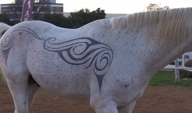 Denizli'de erkek kuaförlüğü yapan ve tribal kesim sanatıyla uğraşan Hüseyin Çaybaş, sosyal medyada gördüğü yabancı ülkelerde yapılan at üzerinde tribal kesimlerinden esinlenerek, Türkiye'yi de bu akıma dahil etti. Binlerce yıllık tribal kesim kültürünü at üzerine nakşeden kuaför Çaybaş, 4 saatlik çalışmayla at üzerine beğeni toplayan sanat eseri ortaya çıkartı.