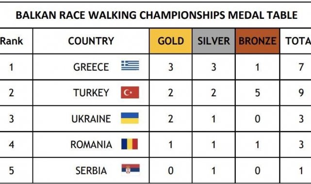 Balkan Yürüyüş Şampiyonası, dün Yunanistan'da gerçekleştirildi. Büyükler, U20 ve U18 kategorilerinde yapılan organizasyona Türkiye, Ukrayna, Romanya, Sırbistan ve Yunanistan katıldı. Balkan Atletizm Birliği tarafından Yunanistan'ın Astros kentinde gerçekleştirilen şampiyonada Türkiye'yi 18 sporcu temsil etti. Hayrettin Yılmaz ve Meryem Bekmez, Balkan şampiyonu olurken, Kader Güvenç ve Azadullah Begçe gümüş madalya kazandılar. Mikail Dere, Kader Dost, İpek Özkavlak, Şerife Berra Güven ve Muhammed Emir Işık ise bronz madalya kazandı.