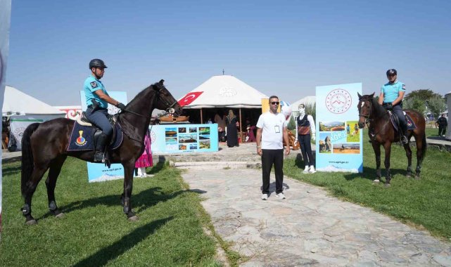 Van'dan gelen atlı birlik, Malazgirt Zaferi'nin 954'üncü yıl dönümü etkinliklerinde görev alırken vatandaşların ilgi odağı oldu.
