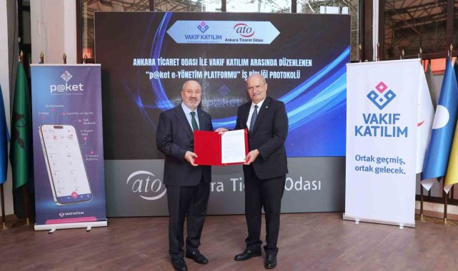 Ankara Ticaret Odası (ATO) üyelerinin, bankadaki işlemlerini ön muhasebe uygulamasıyla birleştirerek tek bir platform üzerinden yapmalarına imkân sağlayacak "p@ket e-Yönetim Platformu" işbirliği protokolü ATO Başkanı Gürsel Baran ile Vakıf Katılım Genel Müdürü Mehmet Ali Akben tarafından imzalandı.