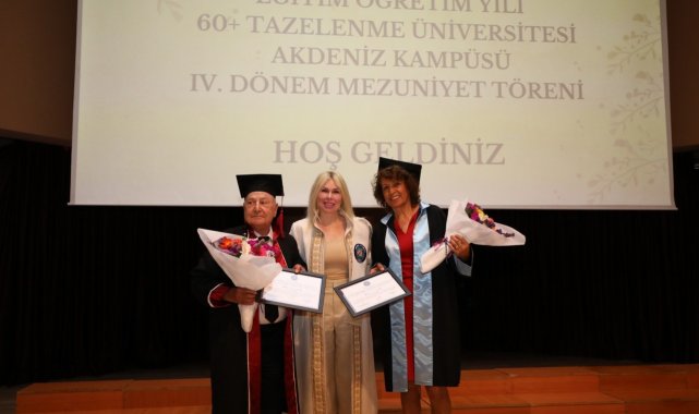 Akdeniz Üniversitesi 60+ Tazelenme Üniversitesinde dördüncü dönem mezuniyet töreni geniş katılımla gerçekleştirildi. Atatürk Konferans Salonunda düzenlenen mezuniyet törenine Akdeniz Üniversitesi Rektörü Prof. Dr. Özlenen Özkan, Rektör Yardımcıları Prof. Dr. Ayşe Gülbin Arıcı, Prof. Dr. Cengiz Toker, Prof. Dr. Şükrü Özen, Antalya Aile ve Sosyal Hizmetler İl Müdürü Galip Sökmen, Sağlık Bilimleri Fakültesi Dekanı Prof. Dr. Aygen Yılmaz, Tazelenme Üniversitesi Kurucusu Prof. Dr. İsmail Tufan, Yaşlılık Çalışmaları Araştırma ve Uygulama Merkez Müdürü (YAÇUMER) Prof. Dr. Gülüşan Özgün Başıbüyük, öğretim üyeleri, çok sayıda öğrenci ile yakınları katıldı.