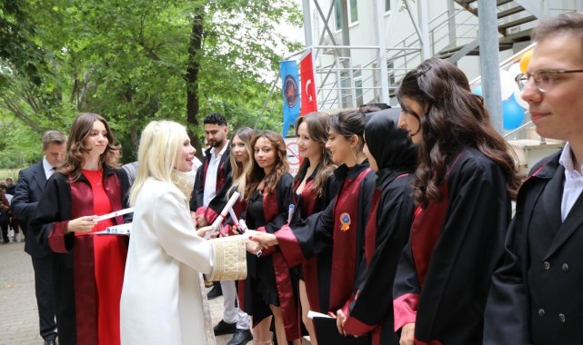 Rektör Özkan, "Meslek hayatınızda birçok fırsat ve elbette zorluklar olacak. Burada aldığınız eğitim, edindiğiniz etik değerler ve geliştirdiğiniz yetenekler sizi her zaman ileri taşıyacaktır. Daima etik değerlerinize bağlı kalın, mesleğinizin onurunu koruyun ve insan olmanın gururunu kalbinizde taşıyın. Sizlerle gurur duyuyoruz. Yolunuzun açık, başarılarınızın sürekli olmasını diliyorum. Kapımız her zaman size açık olacaktır" dedi.