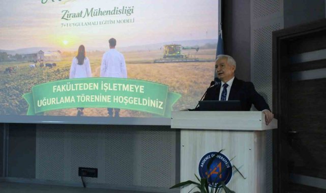 Törenin açılış konuşmalarını gerçekleştirerek sözlerine Antalya ve çevre illerde meydana gelen yoğun yağıştan etkilenen çiftçilere geçmiş olsun dileklerini ileterek başlayan Akdeniz Üniversitesi Ziraat Fakültesi Dekanı Prof. Dr. Mustafa Erkan, "Gelecekte tarımsal üretimde herhangi bir sıkıntıya uğramadan tüm ülkelerin en stratejik politikaları arasında yer alan tarımsal üretimin tüketicilere ulaştırılması amacından teknolojinin kullanılmasının zorunlu olduğunu görmüş olduk. Bu nedenle bugün aramızda olan ve 1 yarıyıl sonra mezun olacak olan siz Ziraat Mühendisleri, bu görevi yerine getirecek ve Türkiye'de tarımsal üretim kesintiye uğramadan tüketicilere ulaştırılmasında en yetkin rolü oynayacaksınız. Fakültemizde özellikle Antalya'daki tarımında potansiyelini dikkate alarak 7+1 uygulamalı eğitim modeline geçtik. Özellikle Türkiye'nin 124 firmasından toplam 225 öğrencimiz sahaya çıkacak. Bunun dışında 42 öğrencimizi de Antalya dışına uğurlayacağız. 1 öğrencimizi de Erasmus kapsamında Polonya'da staja gönderiyoruz" dedi.